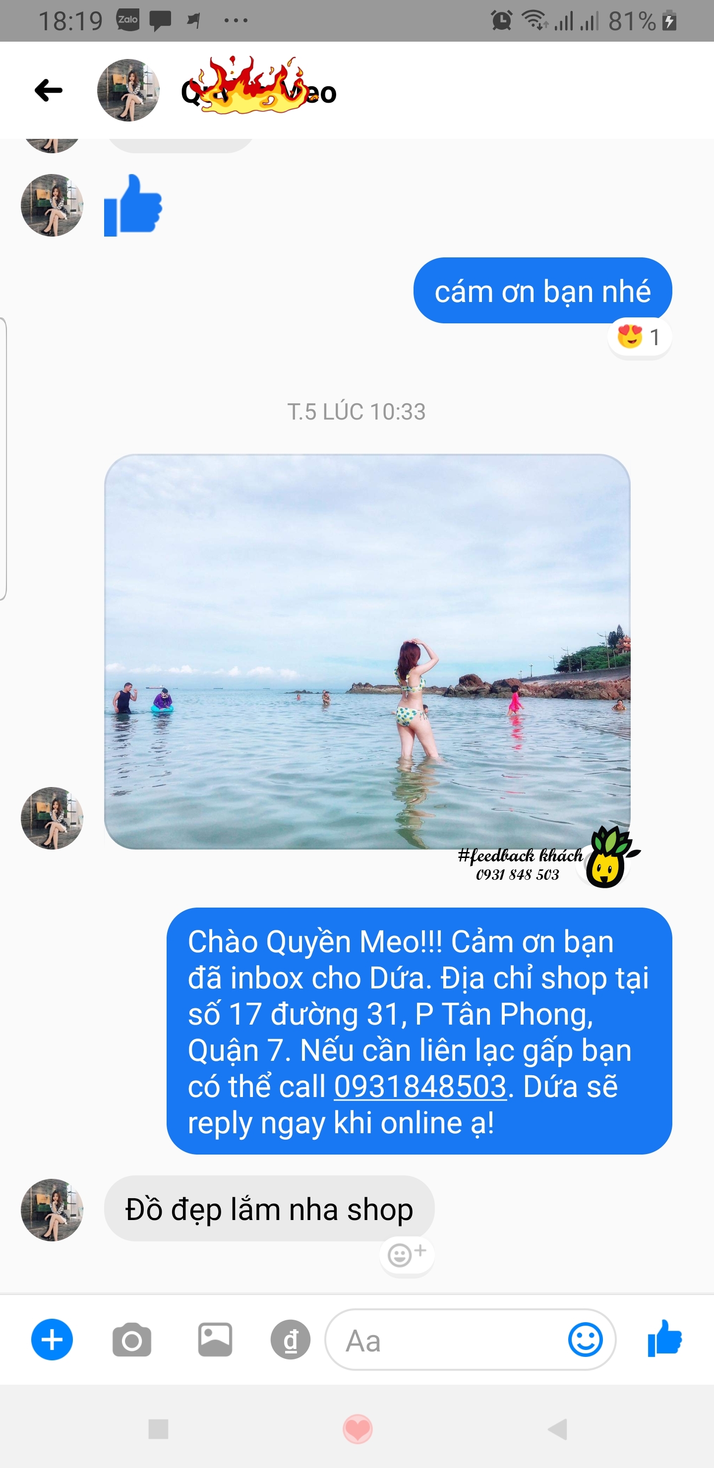 - Cám ơn Chị @Quyền Meo đã gửi #Feedback đến shop, chúc Chị luôn xinh đẹp và vui vẻ. Hy vọng Dứa sẽ luôn đồng hành cùng bạn trong những chuyến đi du lịch thật dễ thương và ngọt ngào 🤗