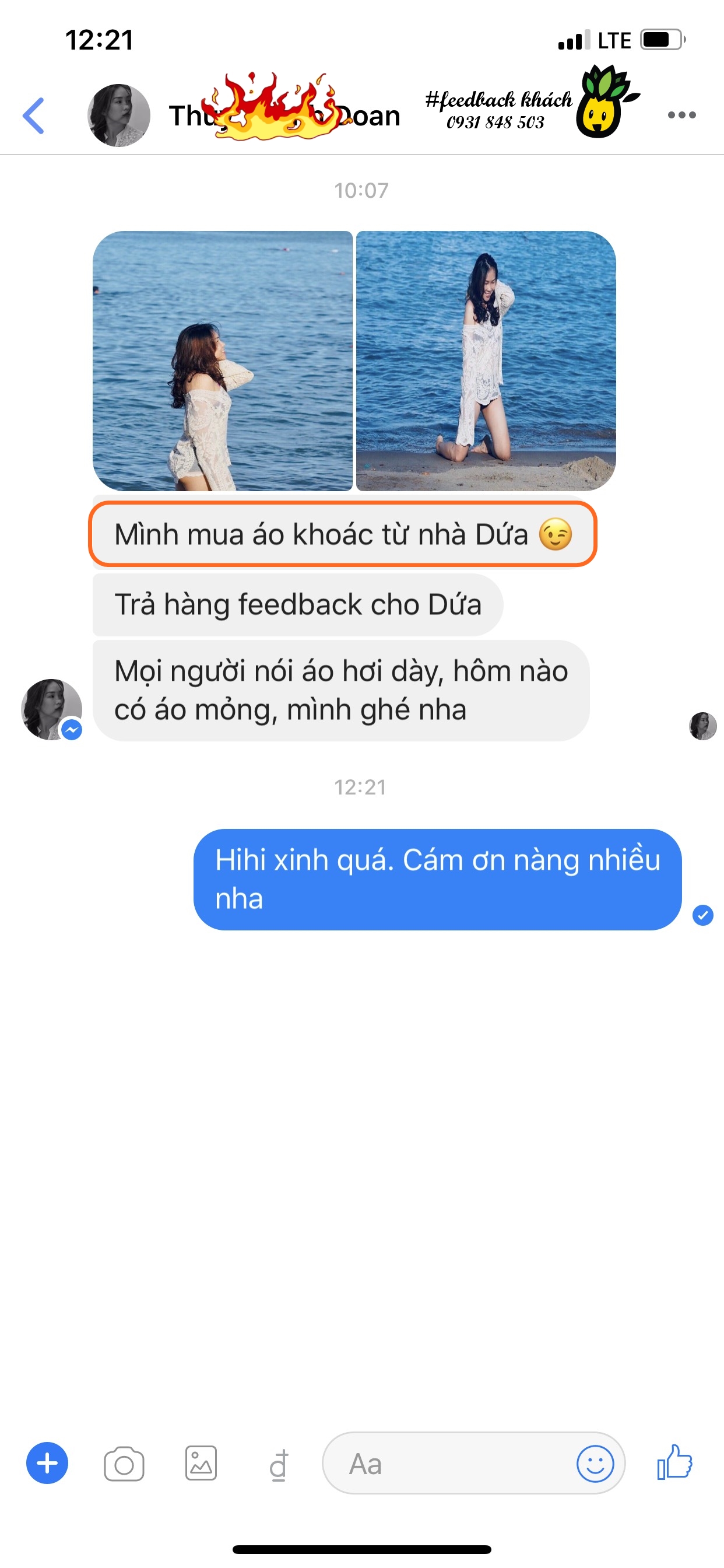 - Cám ơn Chị @Thuy Thanh Doan đã gửi #Feedback đến shop, chúc Chị luôn xinh đẹp và vui vẻ. Hy vọng Dứa sẽ luôn đồng hành cùng bạn trong những chuyến đi du lịch thật dễ thương và ngọt ngào 🤗