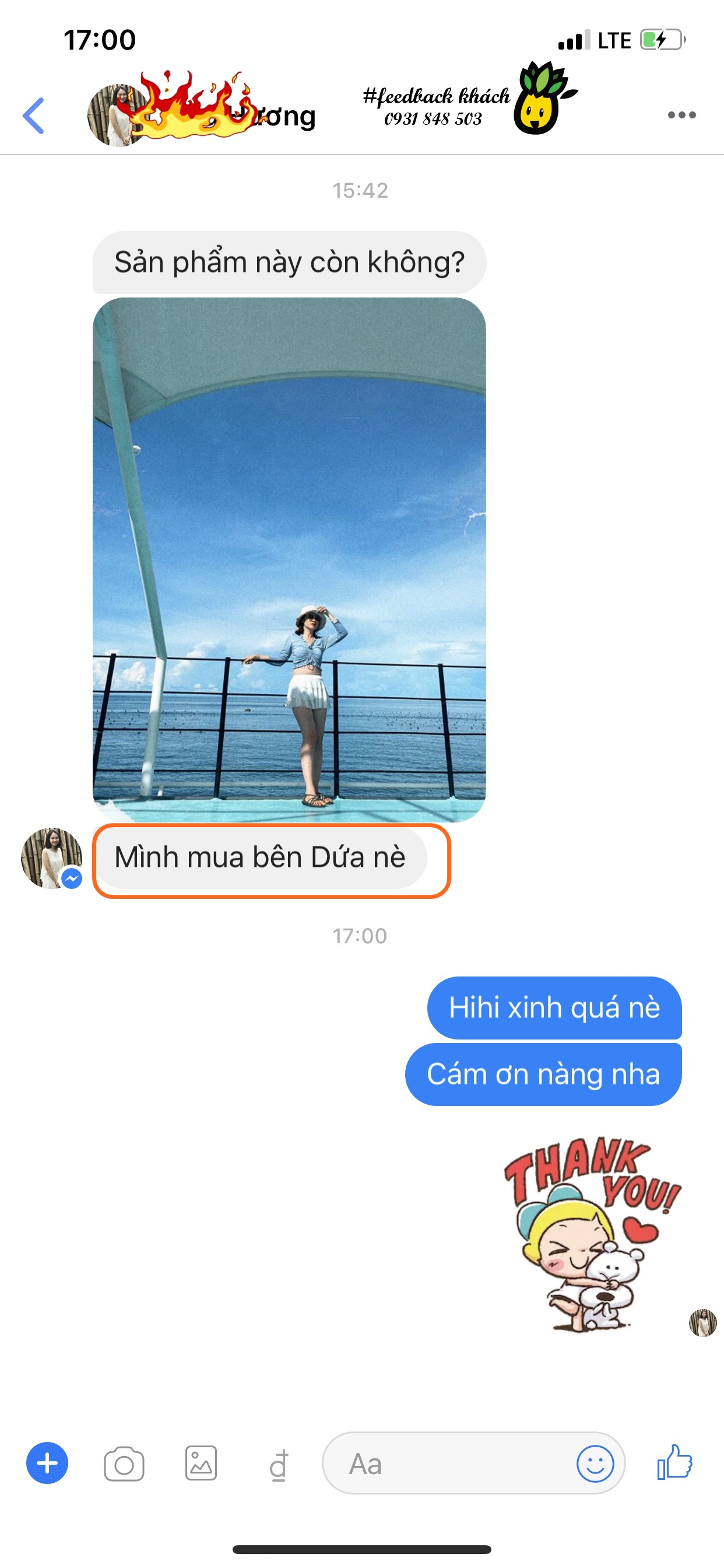 - Cám ơn Chị @Thu Hương đã gửi #Feedback đến shop, chúc Chị luôn xinh đẹp và vui vẻ. Hy vọng Dứa sẽ luôn đồng hành cùng bạn trong những chuyến đi du lịch thật dễ thương và ngọt ngào 🤗