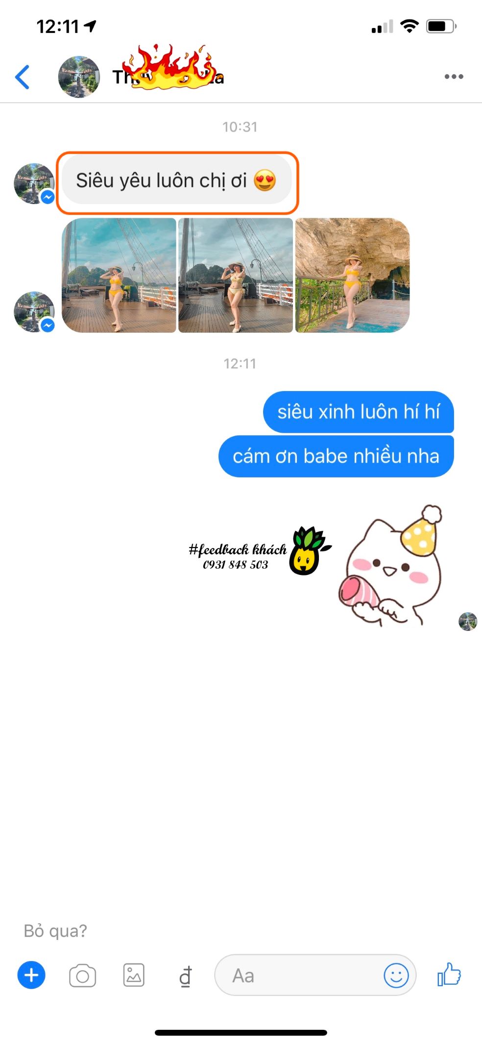 - Cám ơn Chị @La Bích Thủy đã gửi #Feedback đến shop, chúc Chị luôn xinh đẹp và vui vẻ. Hy vọng Dứa sẽ luôn đồng hành cùng bạn trong những chuyến đi du lịch thật dễ thương và ngọt ngào 🤗