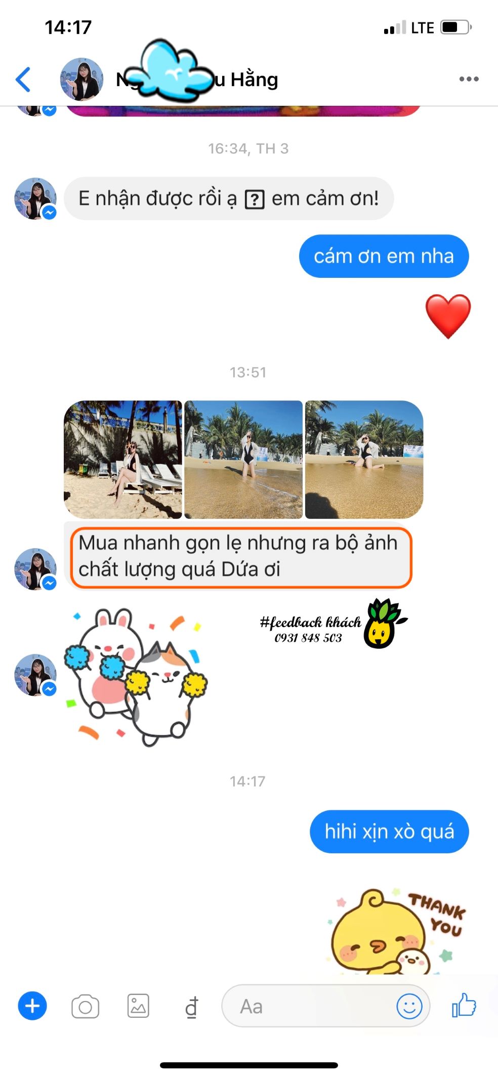 - Cám ơn Chị @Hằng đã gửi #Feedback đến shop, chúc Chị luôn xinh đẹp và vui vẻ. Hy vọng Dứa sẽ luôn đồng hành cùng bạn trong những chuyến đi du lịch thật dễ thương và ngọt ngào 🤗