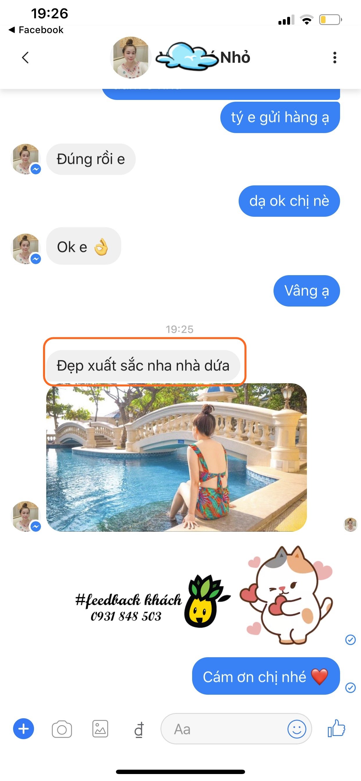 - Cám ơn Chị @Nhỏ đã gửi #Feedback đến shop, chúc Chị luôn xinh đẹp và vui vẻ. Hy vọng Dứa sẽ luôn đồng hành cùng bạn trong những chuyến đi du lịch thật dễ thương và ngọt ngào 🤗