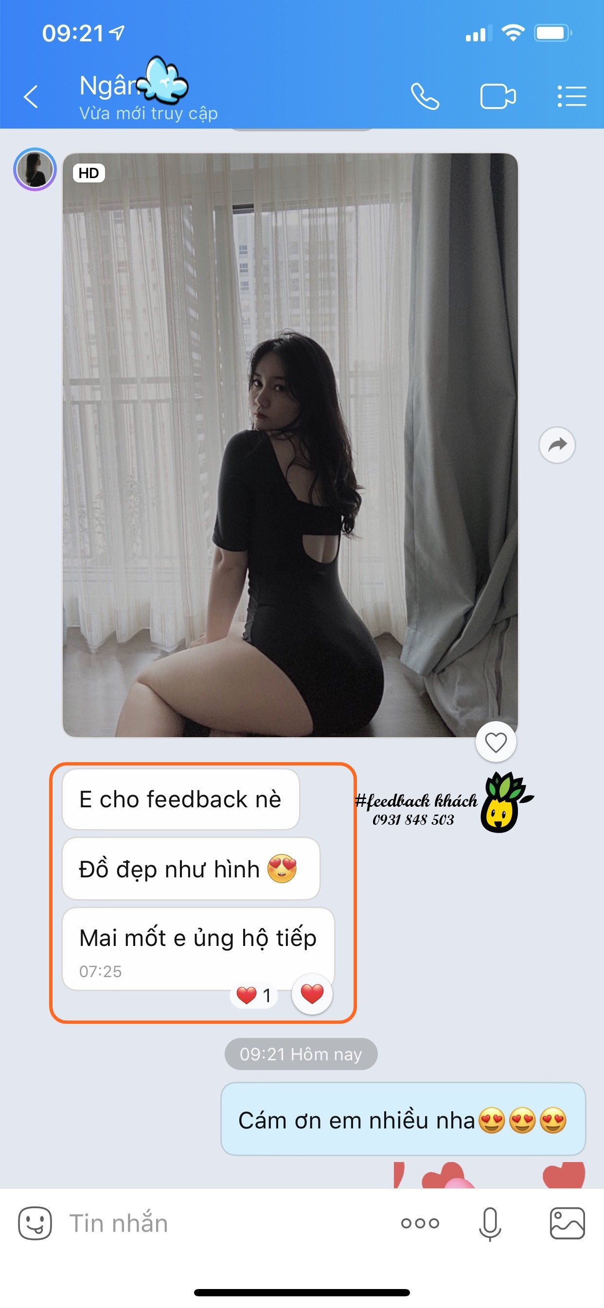 - Cám ơn Chị @Ngân đã gửi #Feedback đến shop, chúc Chị luôn xinh đẹp và vui vẻ. Hy vọng Dứa sẽ luôn đồng hành cùng bạn trong những chuyến đi du lịch thật dễ thương và ngọt ngào 🤗