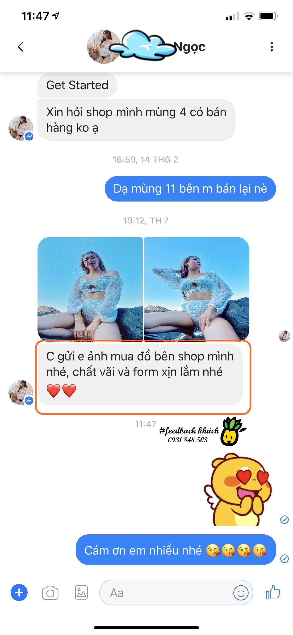 - Cám ơn Chị @Ngọc đã gửi #Feedback đến shop, chúc Chị luôn xinh đẹp và vui vẻ. Hy vọng Dứa sẽ luôn đồng hành cùng bạn trong những chuyến đi du lịch thật dễ thương và ngọt ngào 🤗