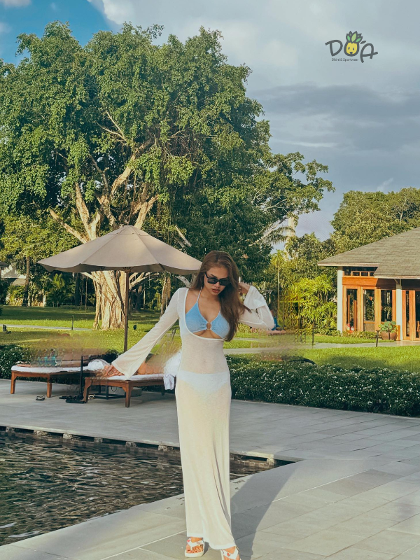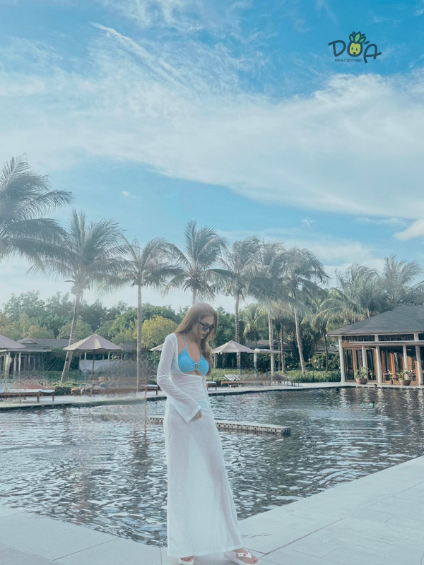#614 Feedback xinh đẹp từ chị @Tường Vy - Sản phẩm đồ bơi ba mảnh nữ mix cùng áo áo lưới trắng xinh | DỨA BIKINI & SPORTWEAR