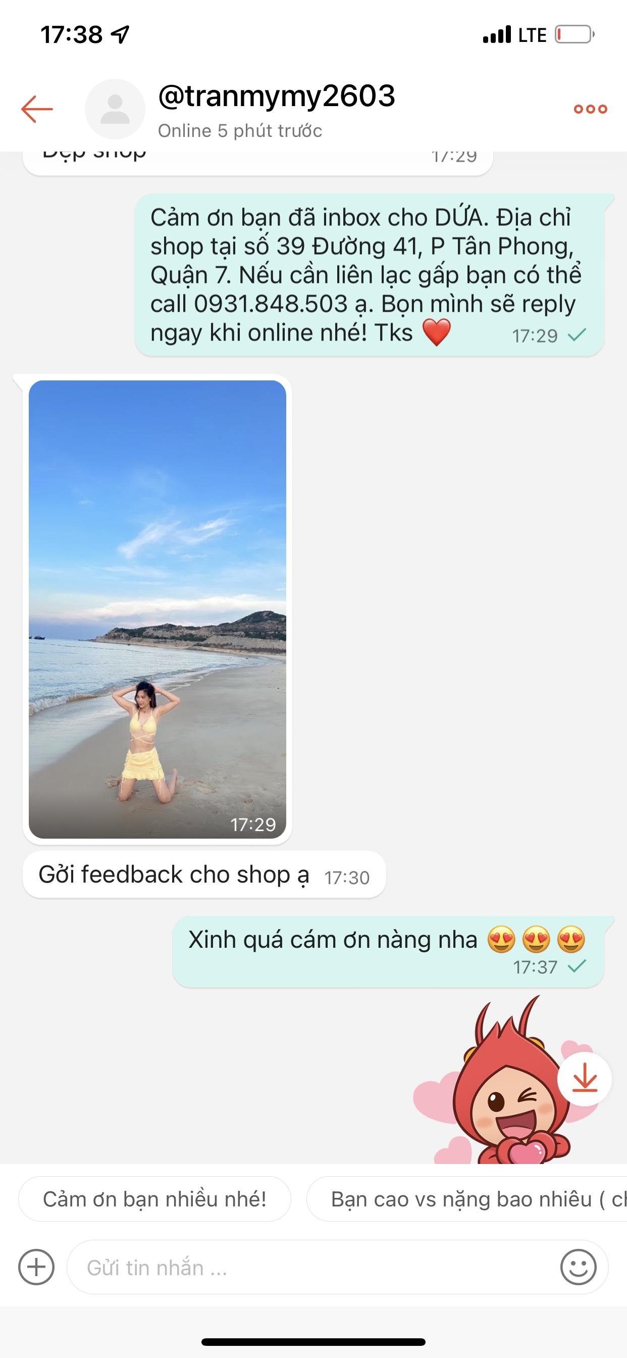 - Cám ơn Chị @Tranmymy đã gửi #Feedback đến shop, chúc Chị luôn xinh đẹp và vui vẻ. Hy vọng Dứa sẽ luôn đồng hành cùng bạn trong những chuyến đi du lịch thật dễ thương và ngọt ngào 🤗