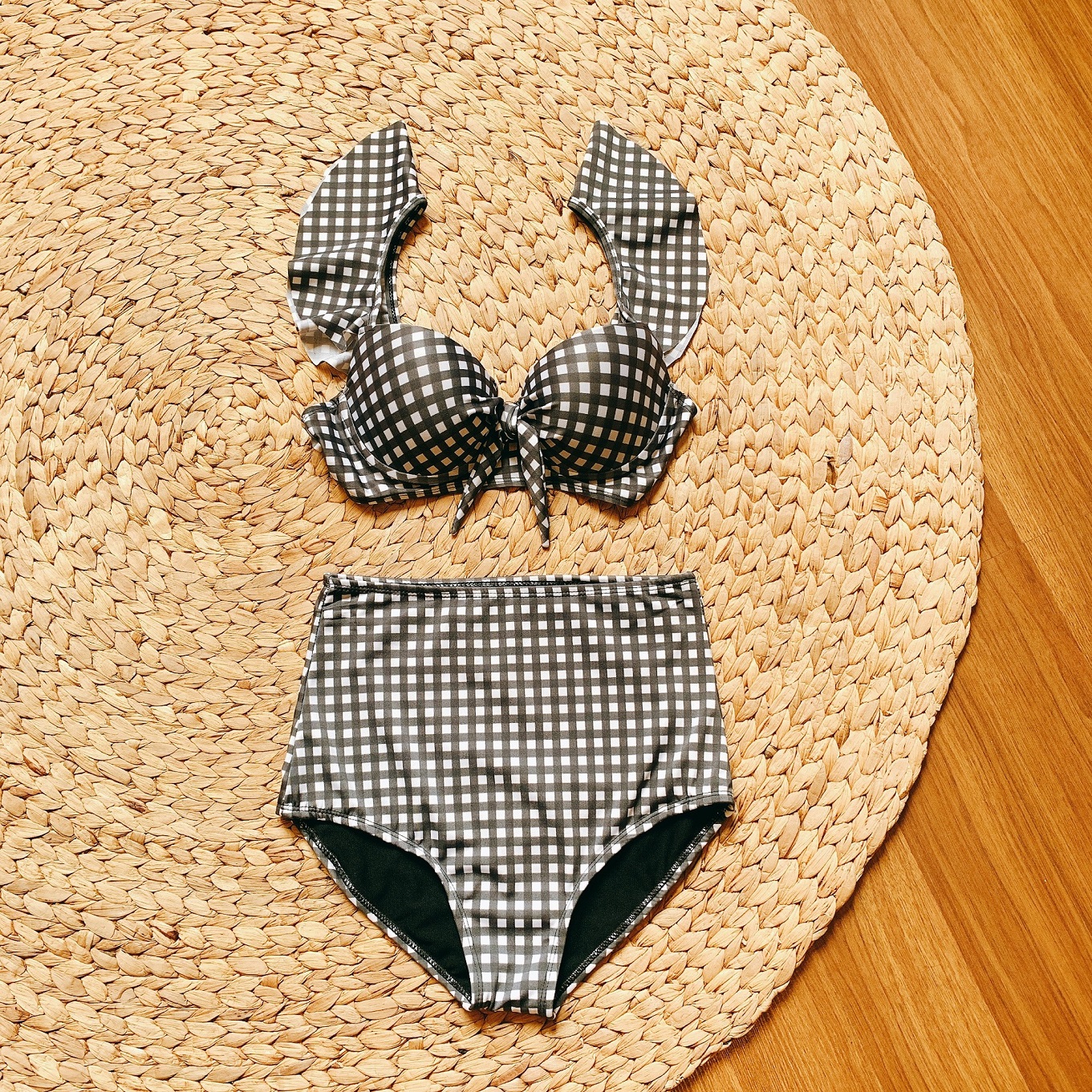 Tên sản phẩm : Đồ bơi nữ hai mảnh quần cạp cao caro tay cánh tiên | DỨA BIKINI & SPORTWEAR