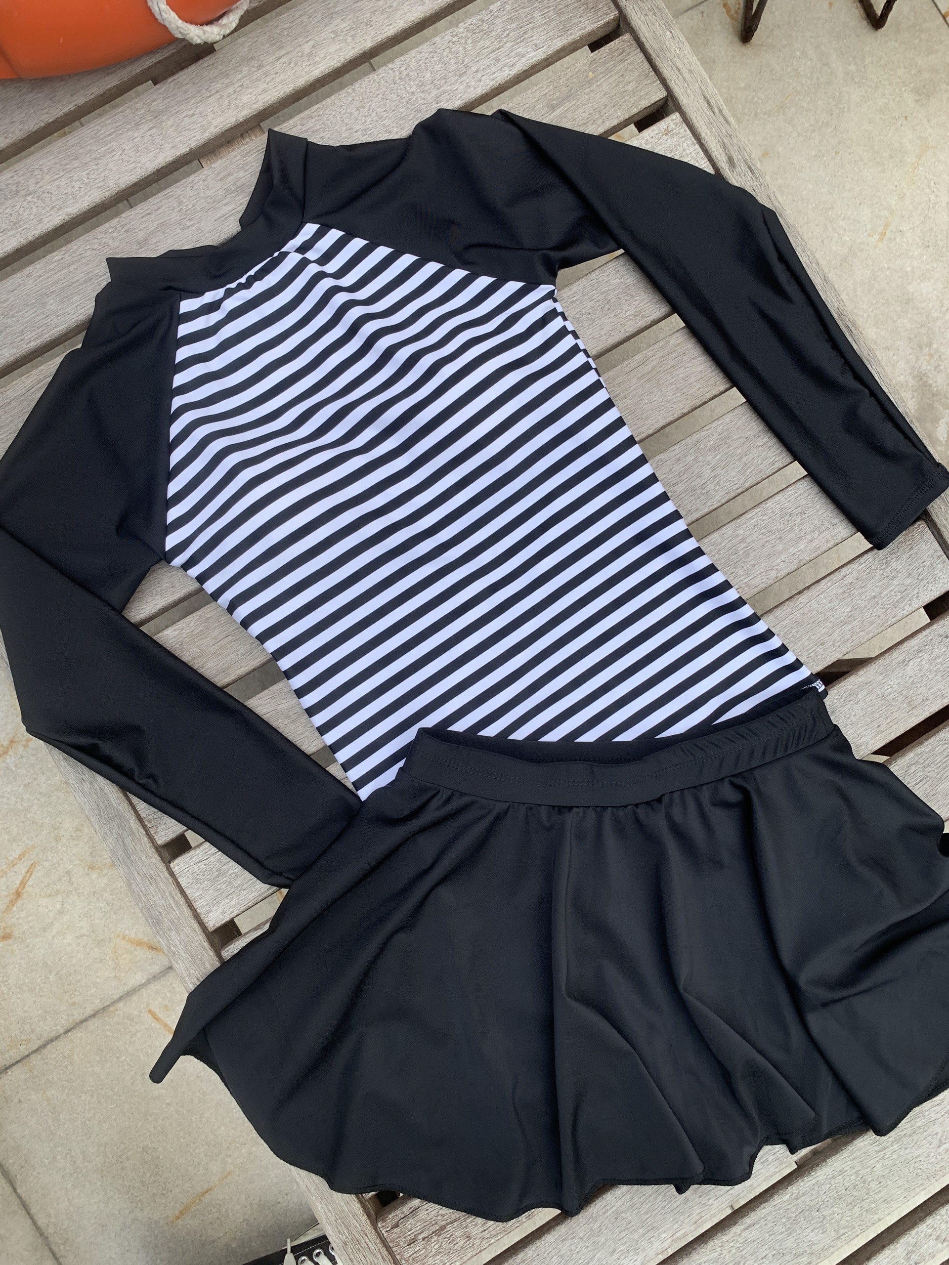 Đồ bơi tay dài kèm váy xòe là loại trang phục bơi lội được thiết kế với tay dài để bảo vệ da khỏi tia UV và váy xòe để thêm phần duyên dáng và nữ tính. Loại đồ bơi này không chỉ mang lại sự thoải mái khi bơi lội mà còn phù hợp với những người muốn che phủ thêm phần cơ thể mà vẫn trông thời trang.