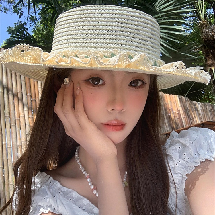 Mũ Cói Viền Hoa Ren Tiểu Thư