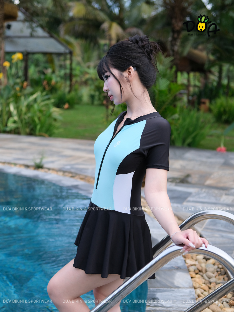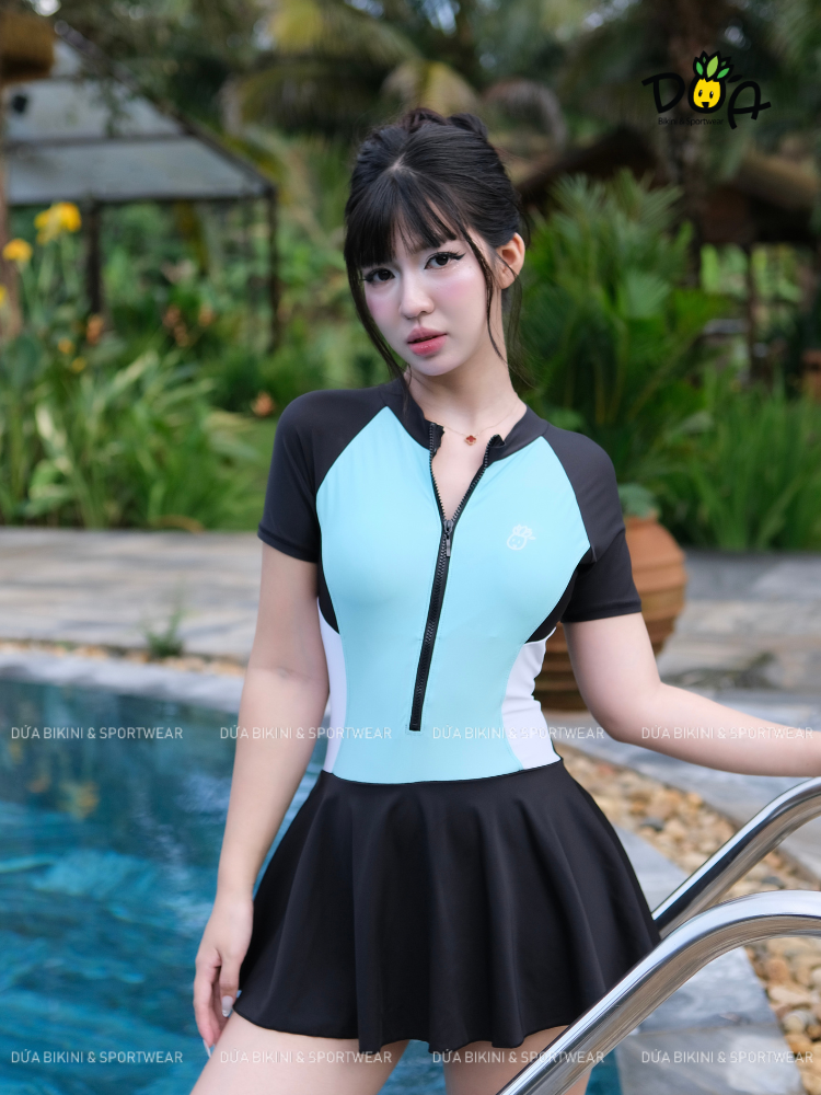 Tên sản phẩm : SORA ELYSE SWIMWEAR - Đồ Bơi Nữ Liền Thân Váy Tay Ngắn Khóa Kéo Chống Nắng Kín Đáo| DỨA BIKINI & SPORTWEAR